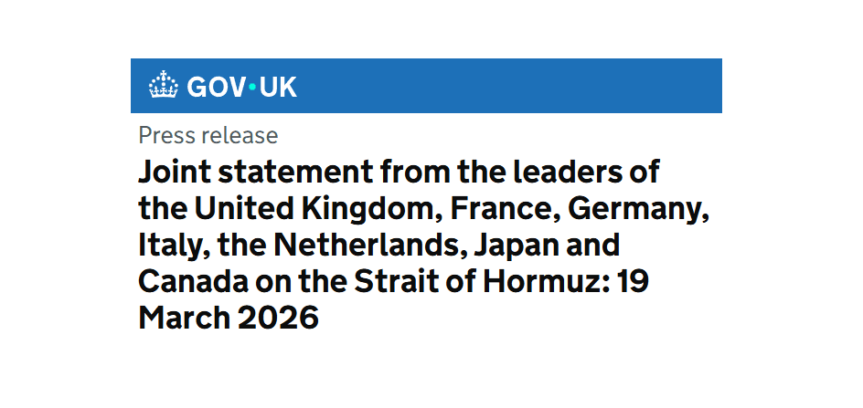 No specific details on naval deployments or timelines were provided in the statement. You can read the full joint statement here: Joint statement from the leaders of the United Kingdom, France, Germany, Italy, the Netherlands, Japan and Canada on the Strait of Hormuz: 19 March 2026