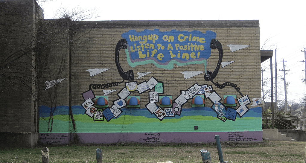 An anti-crime mural seen on a building in Memphis.