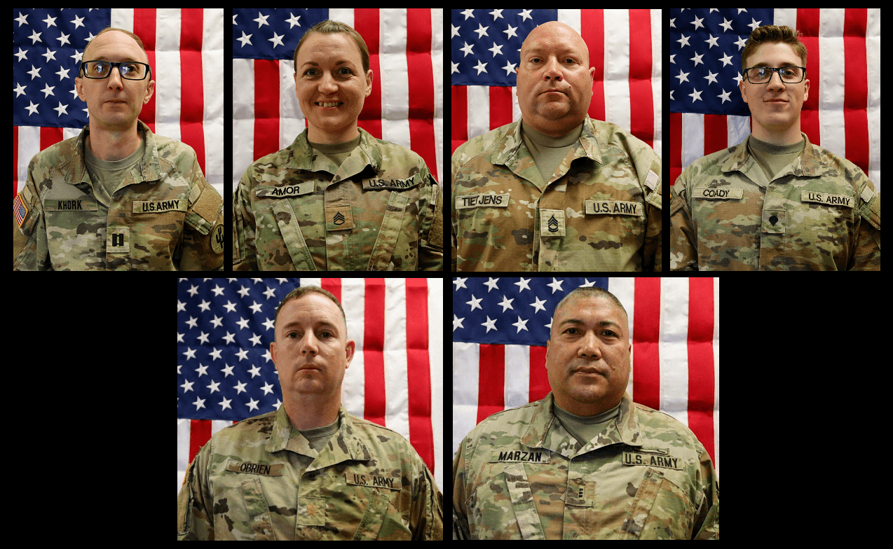 Maj. Jeffrey R. O’Brien, Chief Warrant Officer 3 Robert M. Marzan, Capt. Cody A. Khork, Sgt. 1st Class Nicole M. Amor, Sgt. 1st Class Noah L. Tietjens and Sgt. Declan J. Coady.