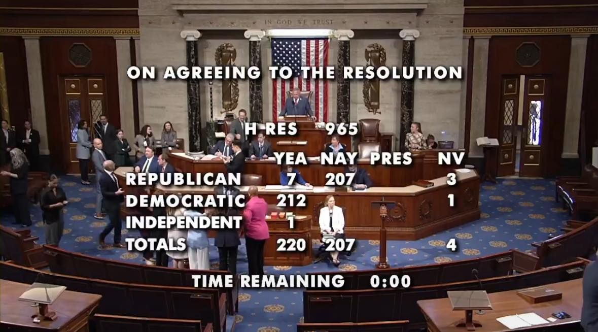 The 10 Republicans who voted yes were: Reps. Brian Fitzpatrick (Pa.), Mike Lawler (N.Y.), Don Bacon (Neb.), María Elvira Salazar (Fla.), Carlos Giménez (Fla.), Nicole Malliotakis (N.Y.), Rich McCormick (Ga.), Mike Turner (Ohio), Mike Carey (Ohio), and Mario Díaz-Balart (Fla.). Independent Rep. Kevin Kiley (Calif.), who caucuses with Republicans, also supported it.